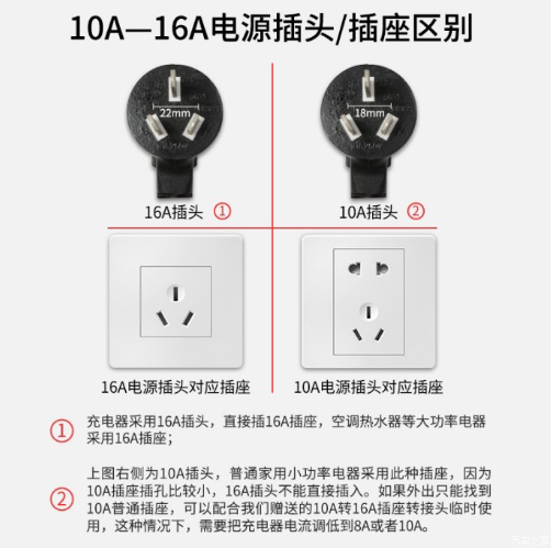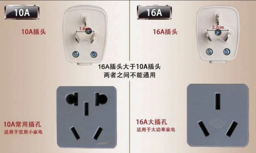 因為最初的插座的額定電流還是10A的,最大電流為10A,即使加上轉16A的轉換插座,電流通過轉換插座后也不會變成16A,和直接用10A的插座是一樣的。在一些轉換器或延長線插排上,會看到16A轉10A的型式轉換,從純粹的安全角度來說,原則上只允許存在16A轉10A(大轉小)的轉換,不允許10A轉16A(小轉大),因為容易發生安全隱患。