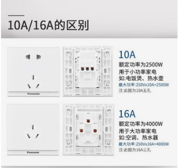 選擇插座的原則是:電器插頭的耐閉額定值(***V/**A)不應大于插座的額定值(***V/**A)。16A的插座可以承受3000瓦以內的電器功率,而10A的插座功率應控制在1800瓦以內,不然容易發生安全意外。